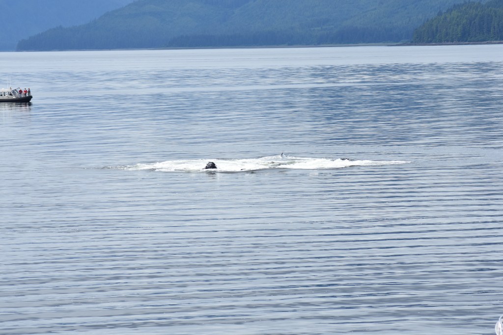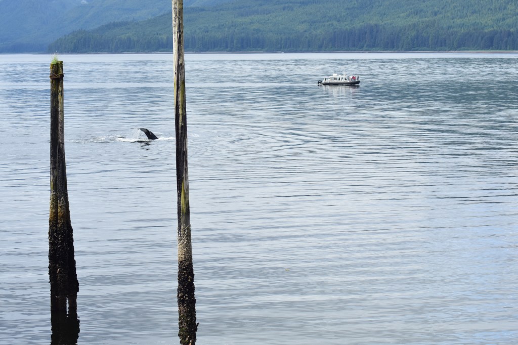 We did see a pod of whales really close to the shore come up once and do a bubble feed. Then we followed them down the water back towards the ship where they dove down and we didn’t see them again.