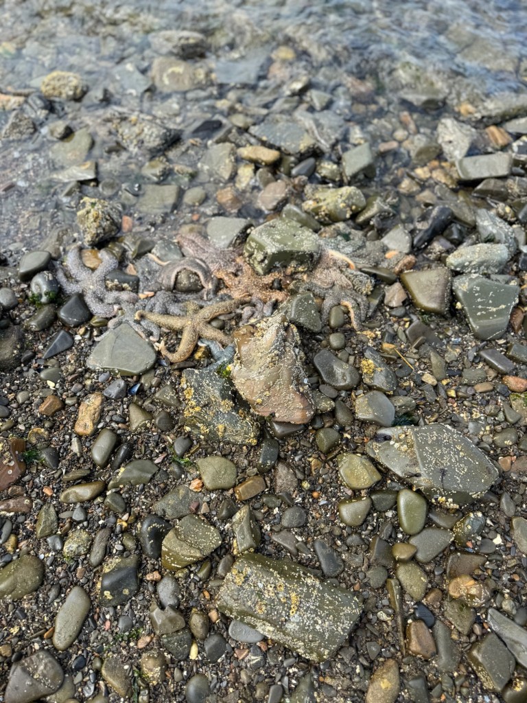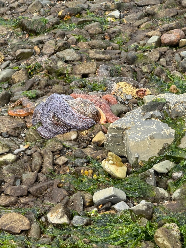 We walked along the water and found sea stars, crabs and other cool things. This area was super slippery with all the seaweed.