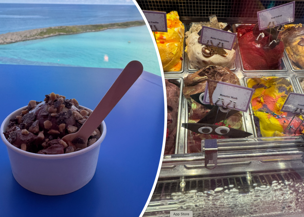 After some exploring on the ship it was time to head up to the pool deck. We were hoping most people would head on the Island to make it quieter on the ship. The girls said they were good with staying on the ship and didn’t want to get off. Since it is vacation we did things a little backwards. We decided to go back to Inside Out Treat Shop and get some dessert. Here you pay for the specialty gelato or ice cream. Then they have different topping to choose from. After we had our dessert we decided then to get some lunch.