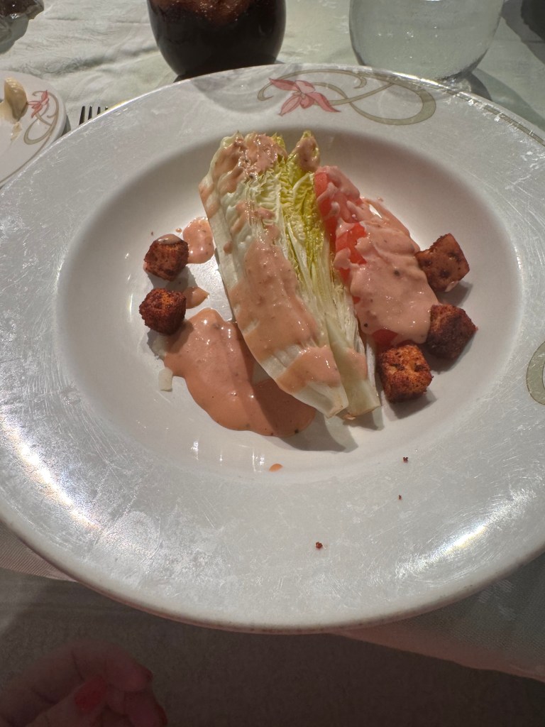I didn’t love the dressing on the wedge salad probably won’t get that again. Then I had Prime Rib it was really good. There is just so much food. The chocolate torte was not good. I ended up not eating it.