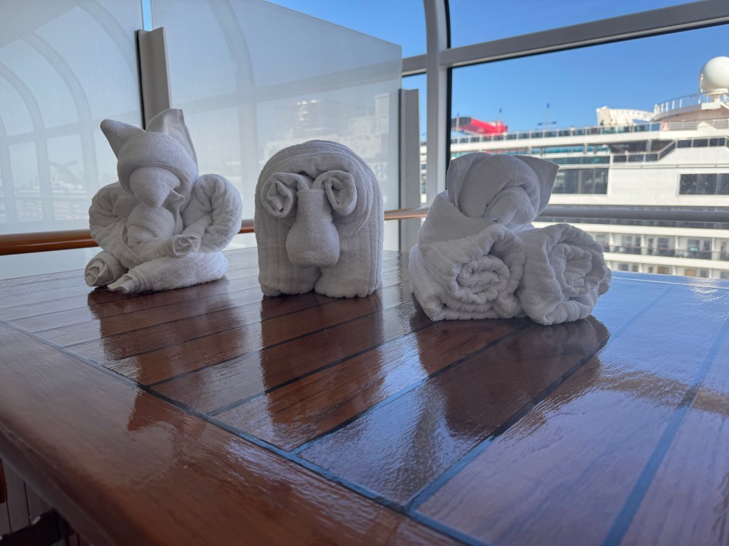I started his morning getting a massage and then went to meet everyone for breakfast. I had to stop and get some pictures of the cute towel animals.