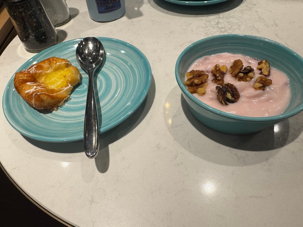 Woke up around 7 this morning. You could feel the ship’s turning getting ready to pull into port. No excursions today so we headed up to Cove this morning for some coffee before joining all the people for breakfast at Marceline Market.