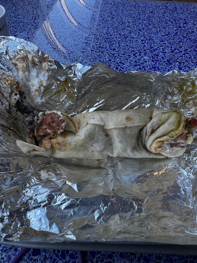 Then it was time for a quick lunch. We decided to go to Donald’s cantina. I went with the grilled chicken burrito. My picture isn’t the best but the burrito was good.