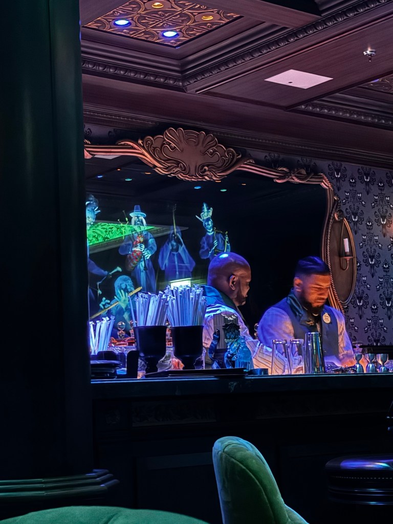After some time in the sun it was back to the room to change and on to the next adventure. We decided to go to the Haunted Mansion bar for a drink and to enjoy the music. While in the bar the pictures change, they sing and ghost appear behind the bar.