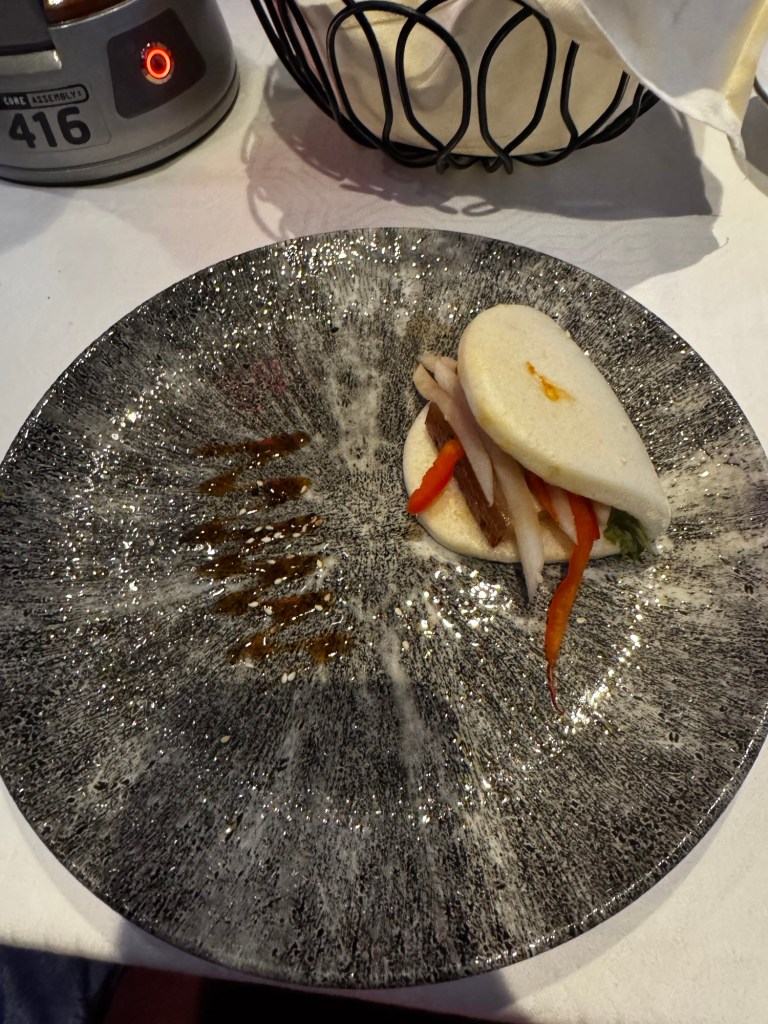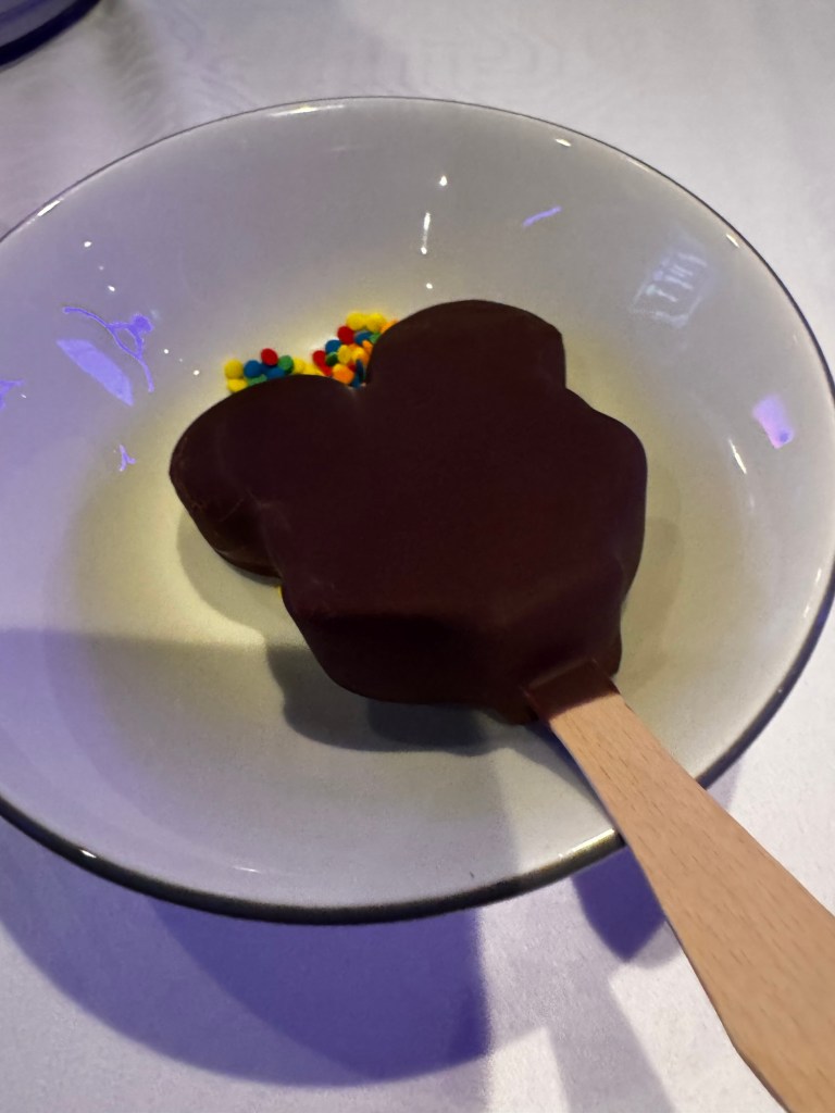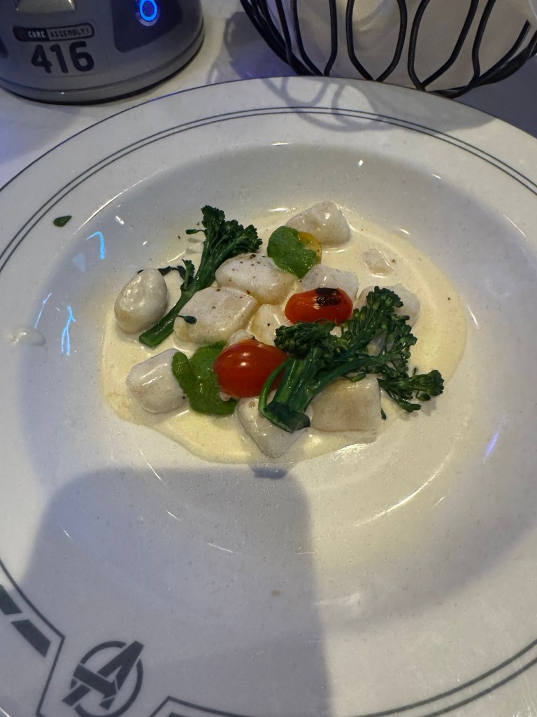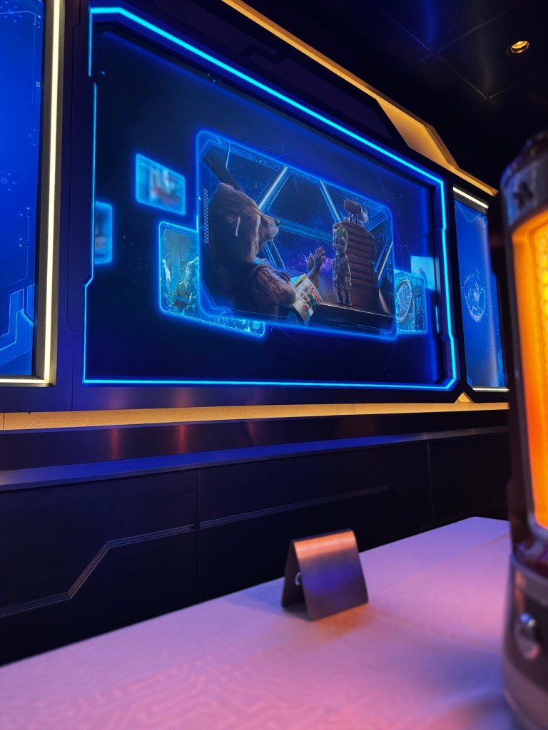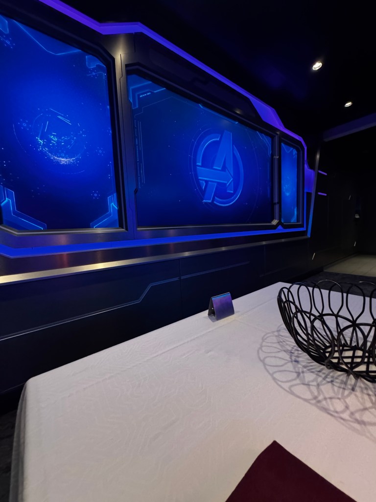 Tonight’s dinner was in Marvel. There was a Marvel trivia game and you made the selections on the quantum core. It was good something to entertain us during dinner. We had a seat close to the screen.