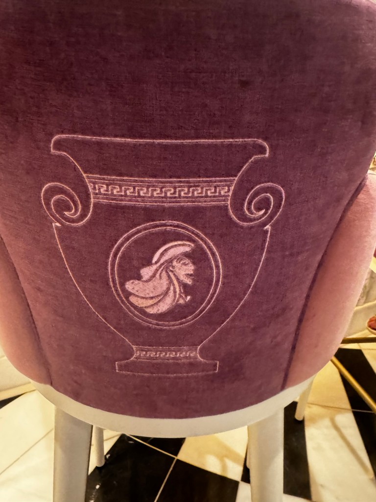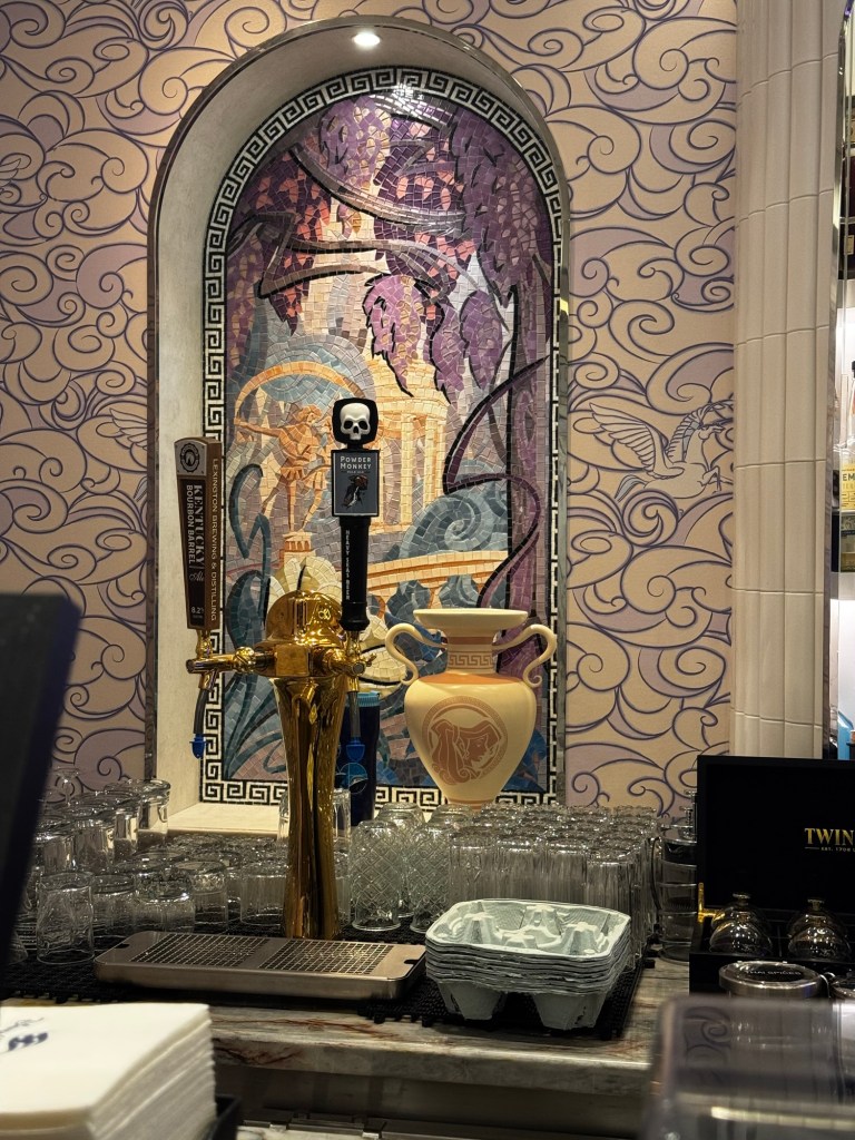 After getting our coffee we headed up to deck 5 to do our ship tour. They changed it with the new ships and you have to book it through the onboard activities to find the times it is happening. Our guide forget it was happening today and no one came until almost 9:30 which is 30 minutes after it was supposed to start. We did learn some cool things about the ship. Since it is the 7 ship in the fleet there are groups of 7 things a lot of places. Like the stars in each corner there are 7 stars.