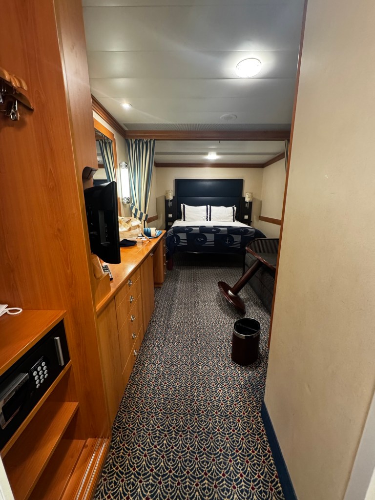 At 1:30 we headed down to the our rooms to check them out and look for our luggage. I have an inside stateroom. For just me it has plenty of space and lots of storage.