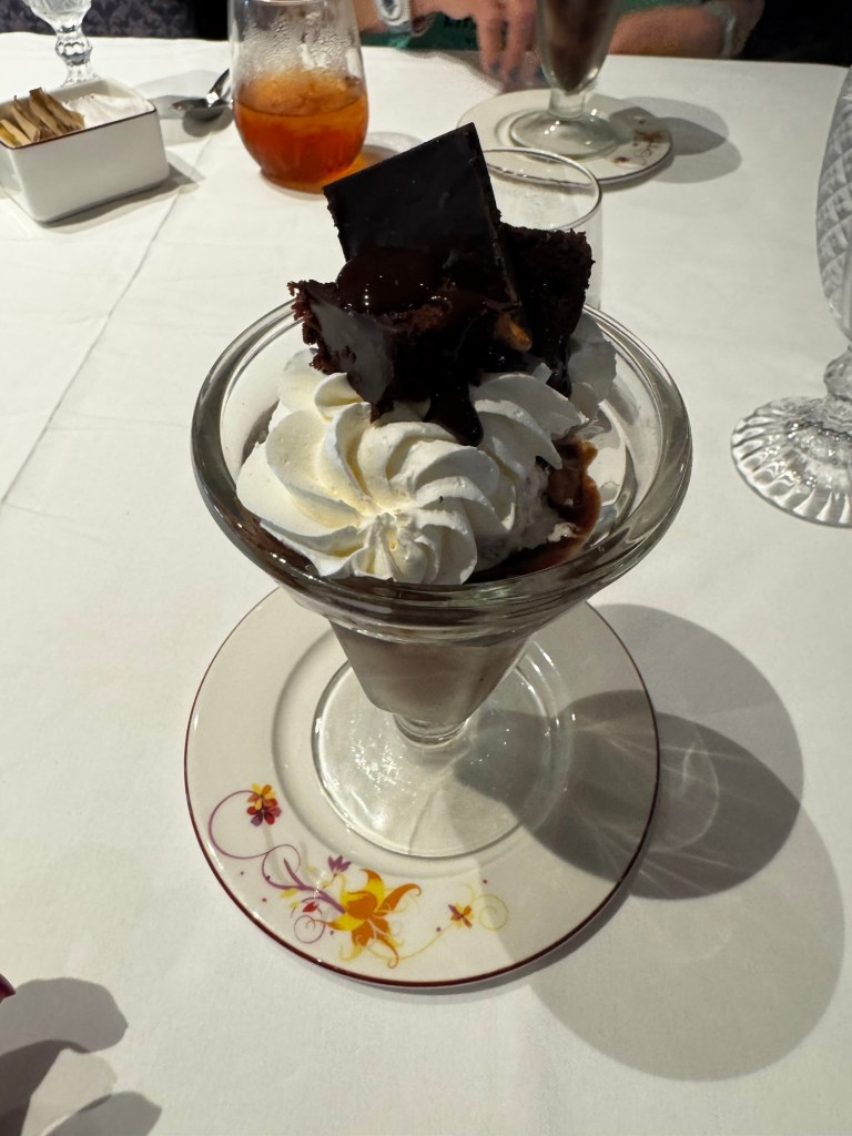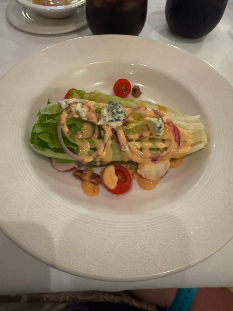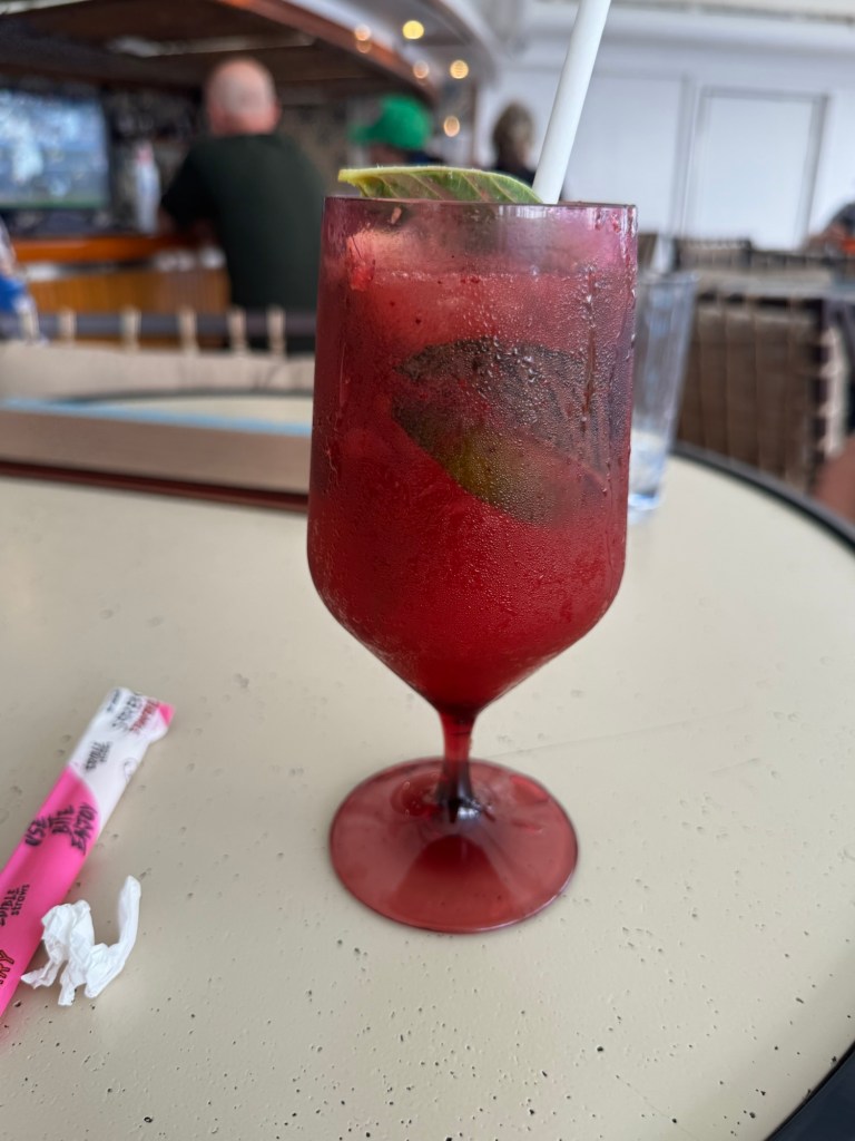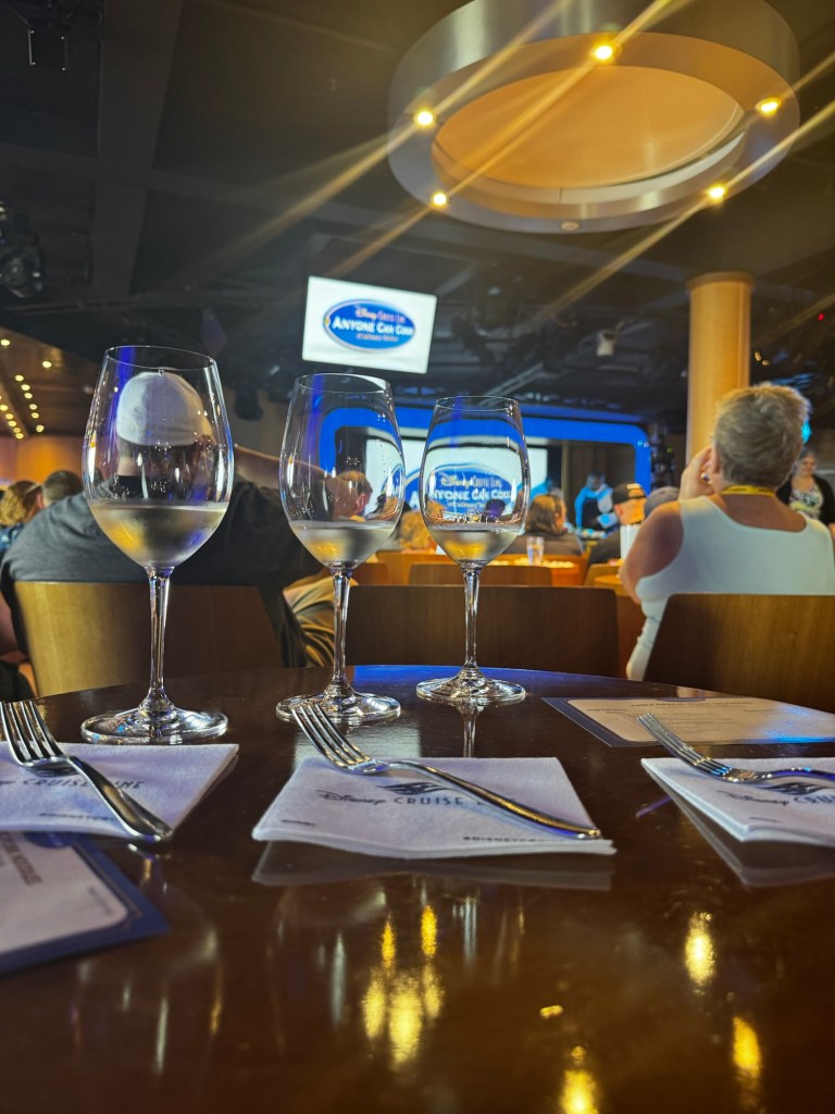 Mom and I went up to the pool for a while. There are so many adults on this trip that the adults areas are usually packed. So we have spent more time in the family pool area. Which means we get to watch the funnel vision. The only issue was the movie this afternoon was Tinker Belle and how she became a fairy. It was bad but we watched the entire movie while chilling in the hot tub and by the pool. It rained a little but the hot tub was covered. Then we were able to find a spot at Signals to get a drink and relax before dinner.