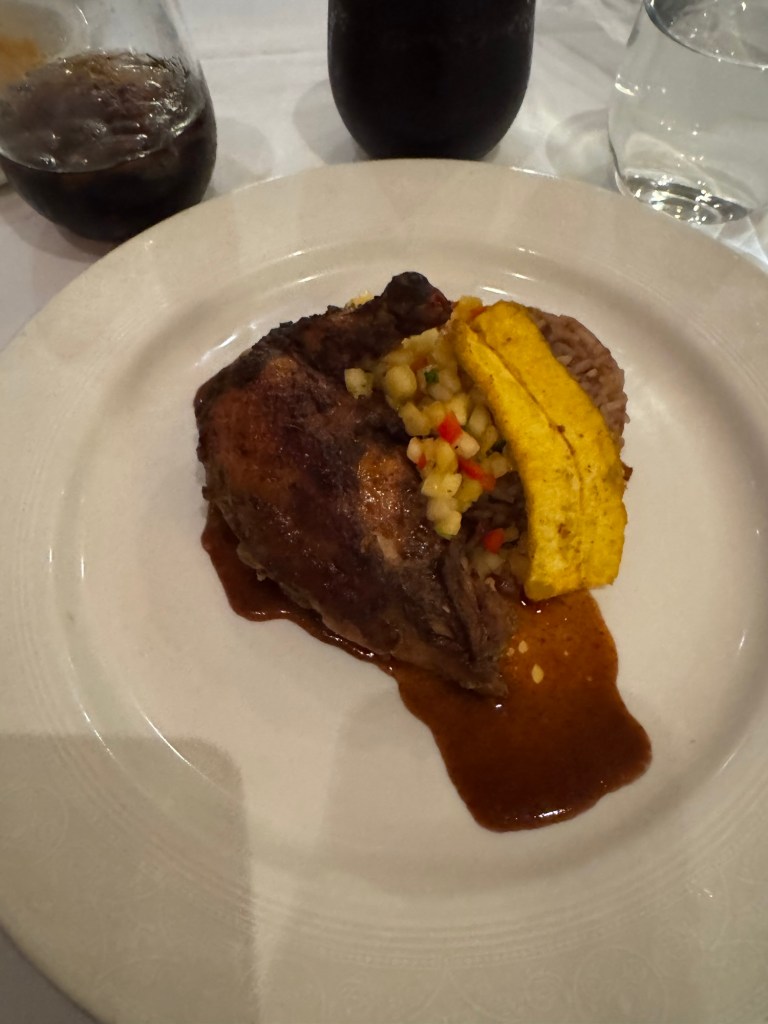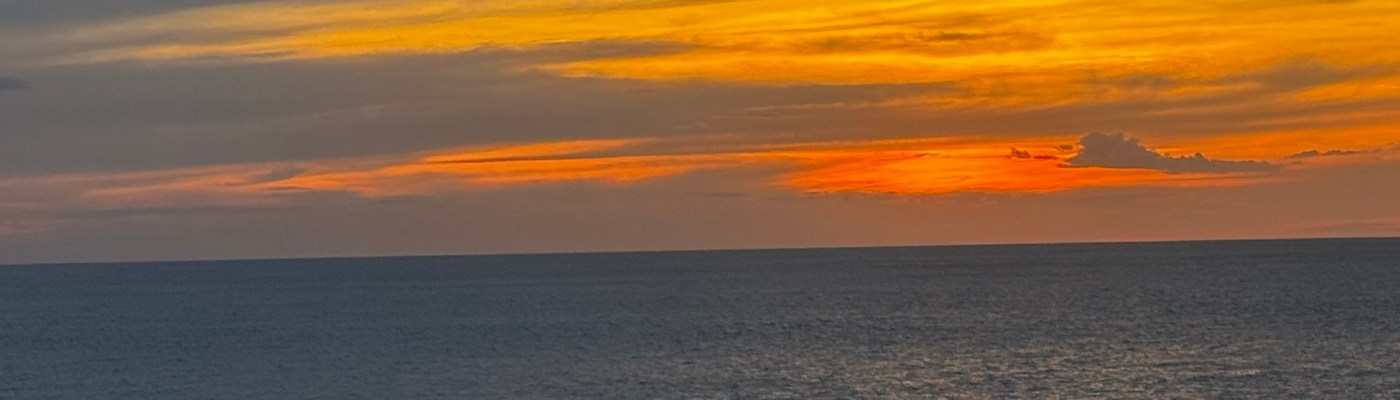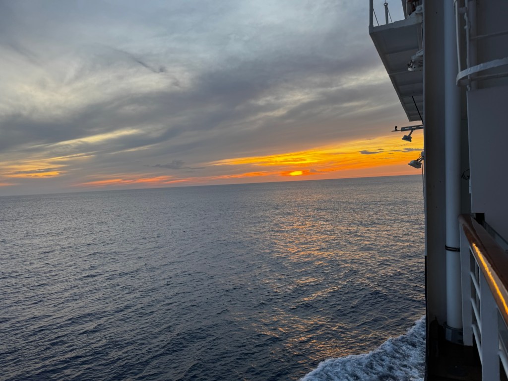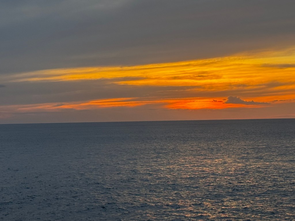 After dinner we walked a few laps and then found some seats outside. We were trying to keep ourselves awake for the fireworks. About 8pm gave up and headed to our rooms. I thought about heading up at 9:45 but didn’t feel like getting out of bed. I’ll catch the fireworks on the next cruise. The sunset was really pretty.