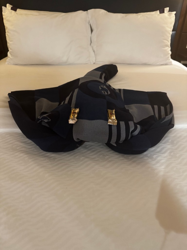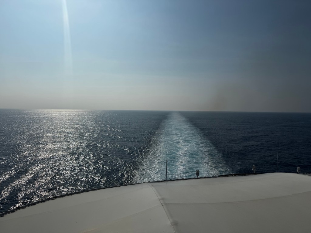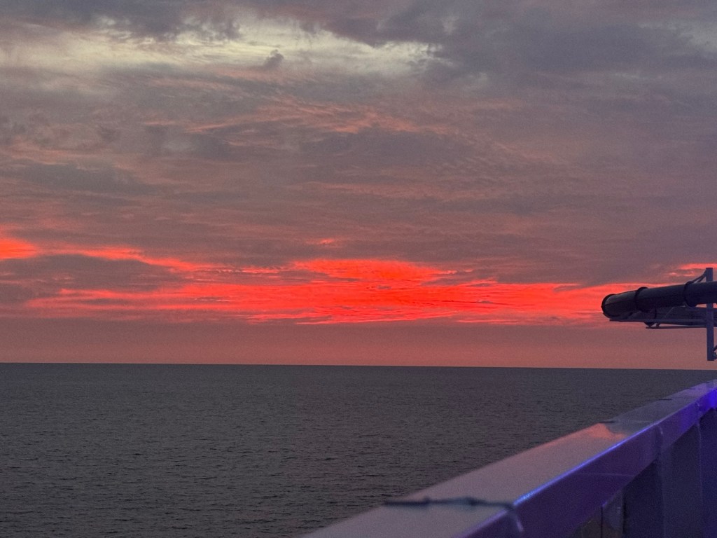 For our post dinner walk we started on deck 4 and then decided to go up to deck 10 and see the sunset. It was pretty but super windy! After our walk Mom came to my room and we watched Shang-Chi.