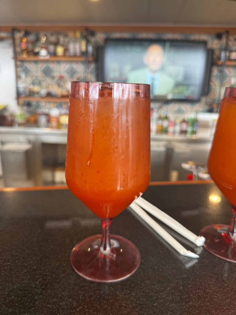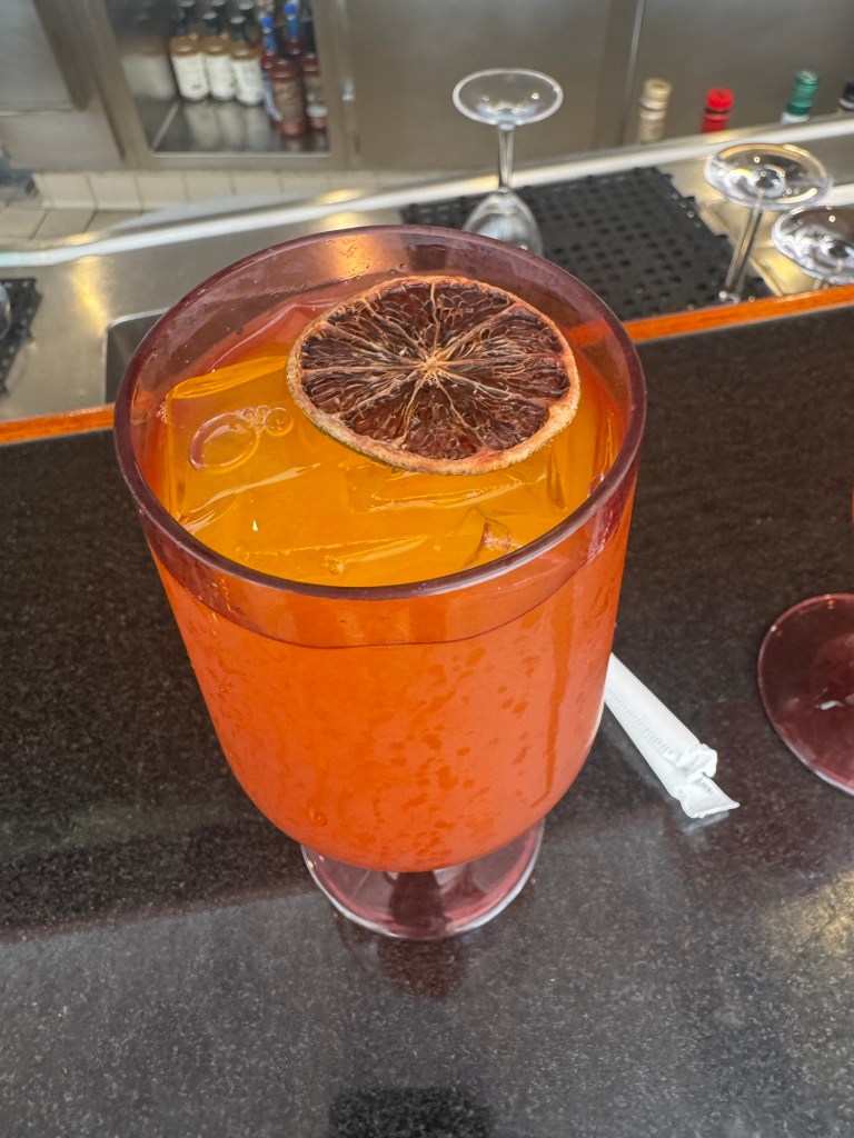 After lunch I read for a little while and then decided to go to the room. I was going to nap but instead watched Black Panther. Headed to deck 4 for an afternoon drink. Tried the drink of the day a Castaway Wave.