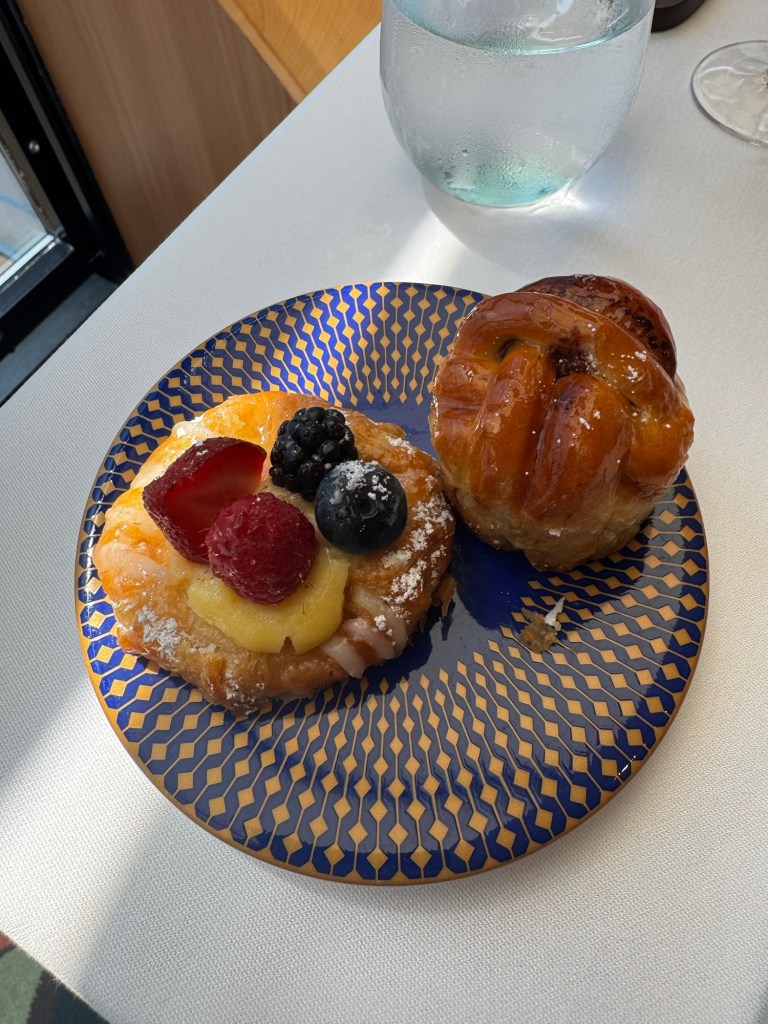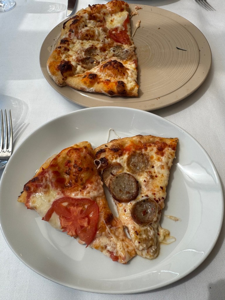 Mom and I had brunch at Palo this morning at 9:30 so we headed up for that. I decided on the fruit tart pastry and a Nutella muffin. We need to tell them to not bring us the bread basket we never eat it. Then order pizza always a yummy choice followed by lasagna. We were too full to get dessert after all that food.