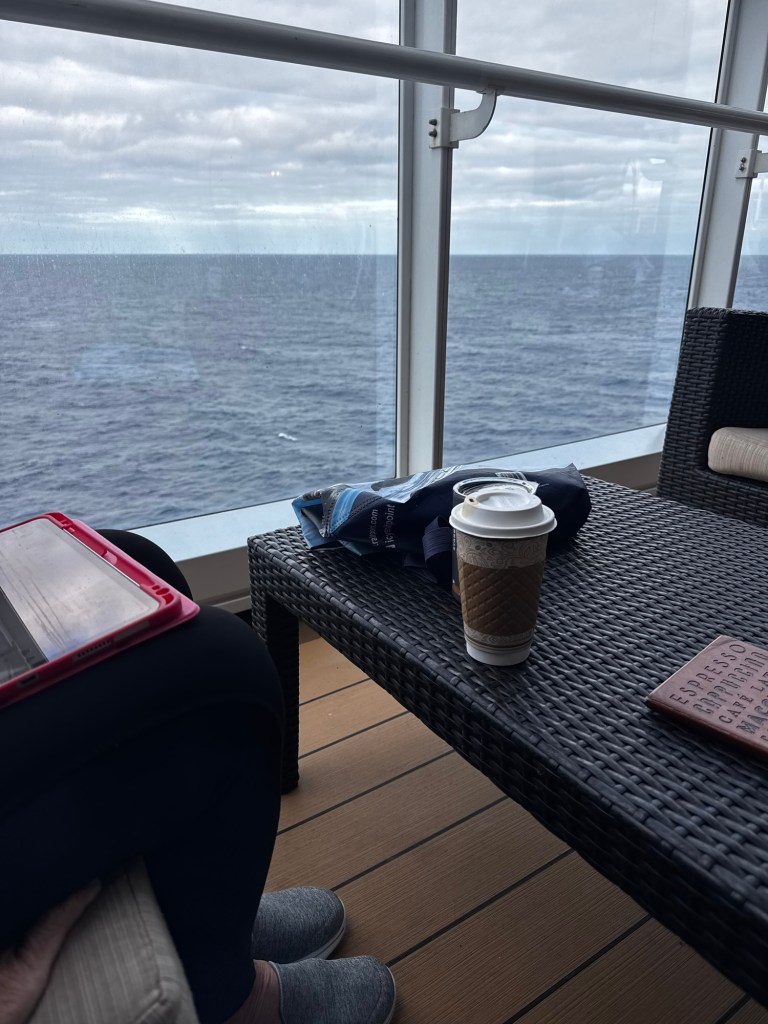 Last day at sea for this trip. The temperature dropped over night and today it is supposed to be high of 67 and it is windy outside. Enjoying morning coffee with an ocean view while it lasts.