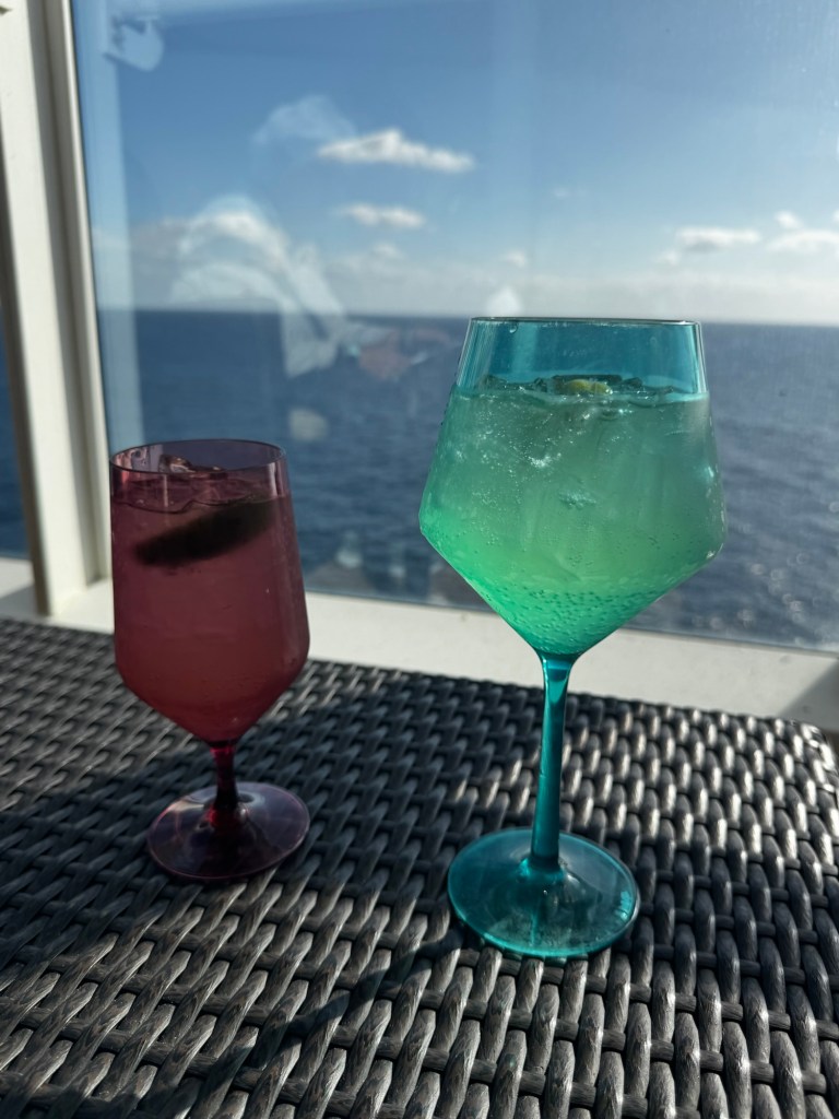 In between lunch and drinks we did lots of walking and reading. It was chilly and windy and lots of people down on deck 4 relaxing in the loungers so we didn’t get to sit in those at all. Then need more out on deck 4 they only had about 5 it seemed like on each side. Trivia was happening down in O’Gills this afternoon so we headed up to signals for a drink.