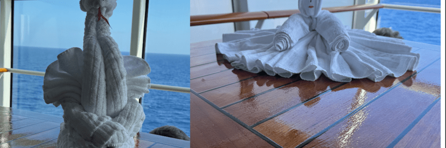 I started his morning getting a massage and then went to meet everyone for breakfast. I had to stop and get some pictures of the cute towel animals. I met up with B at Cabanas to grab something to eat. We were in Nassau, but did not have any plans to get off of the… Read More Nassau, Bahamas November 26, 2025